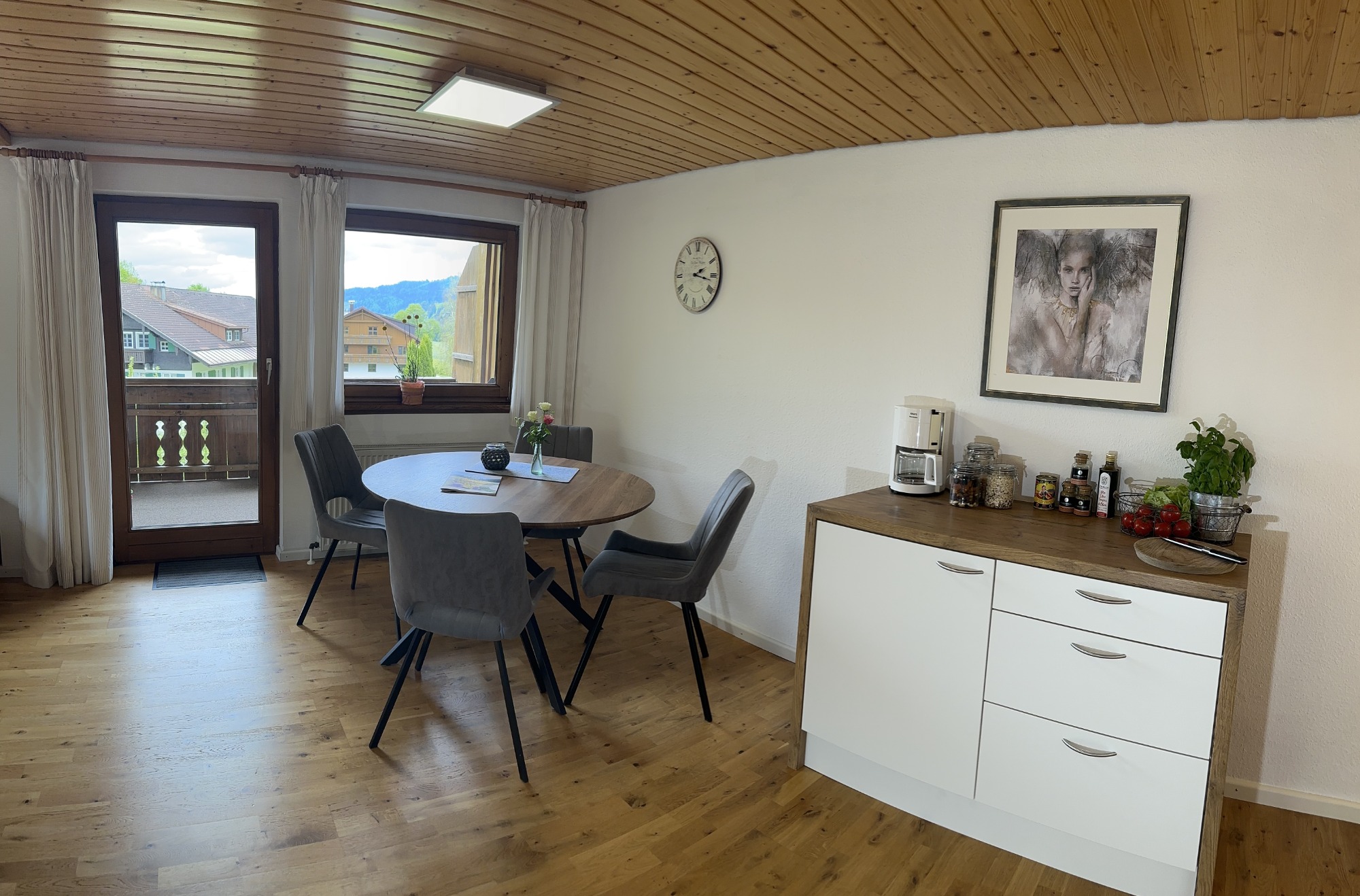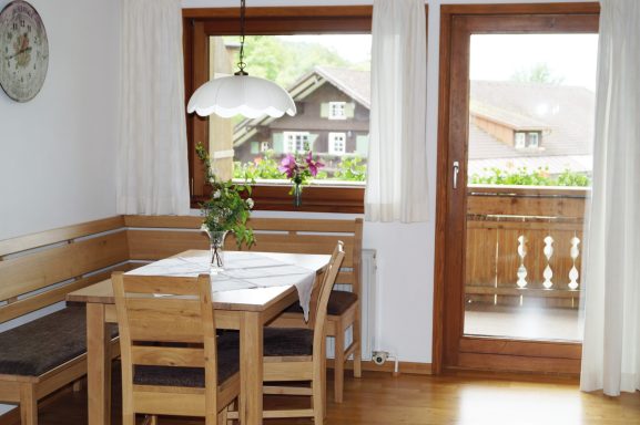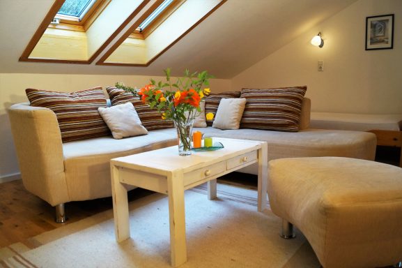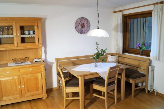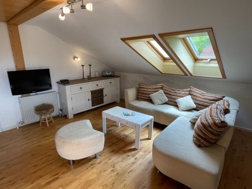 - Wohnzimmer mit Esstisch und Couchgarnitur inkl. Smart-TV mit Sat