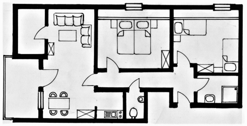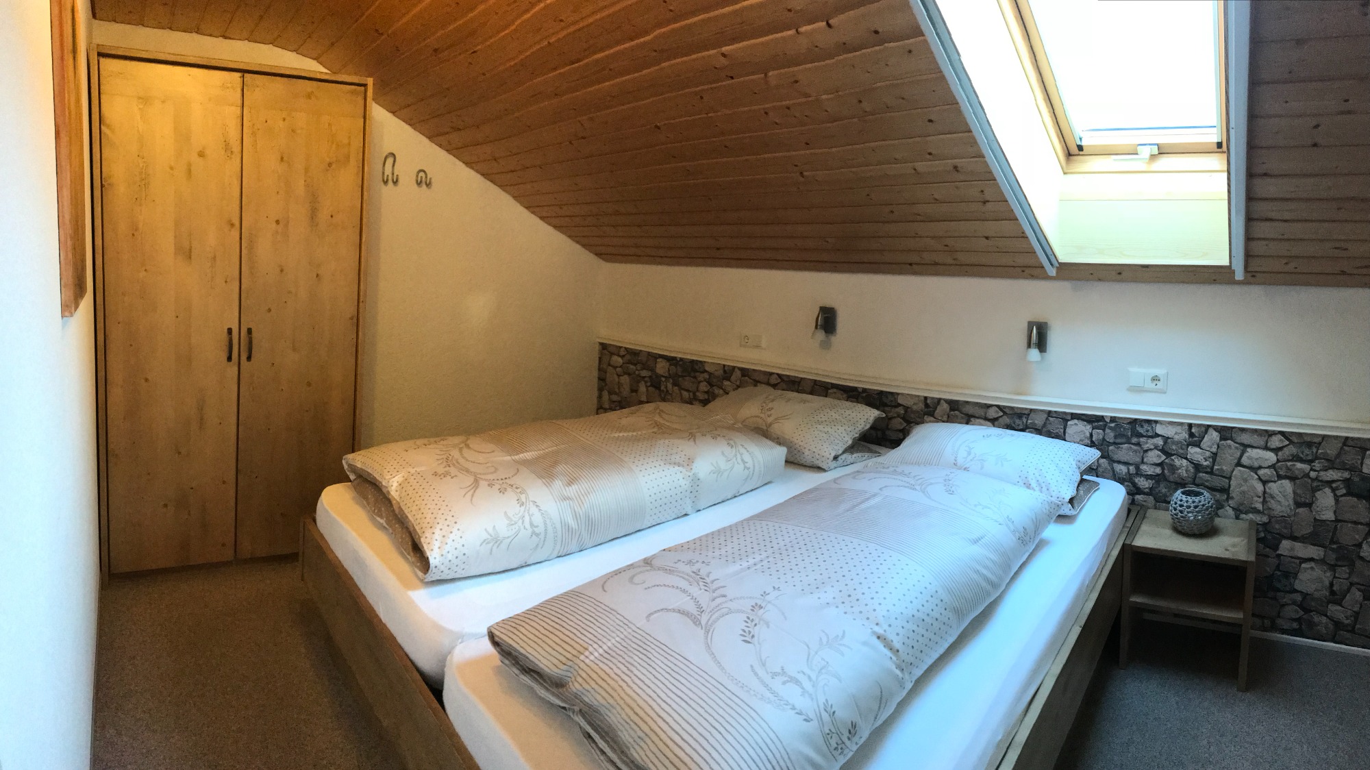 - separates Schlafzimmer mit Doppelbett, im Wohnraum finden bei Bedarf gut zwei vollwertige Betten platz
